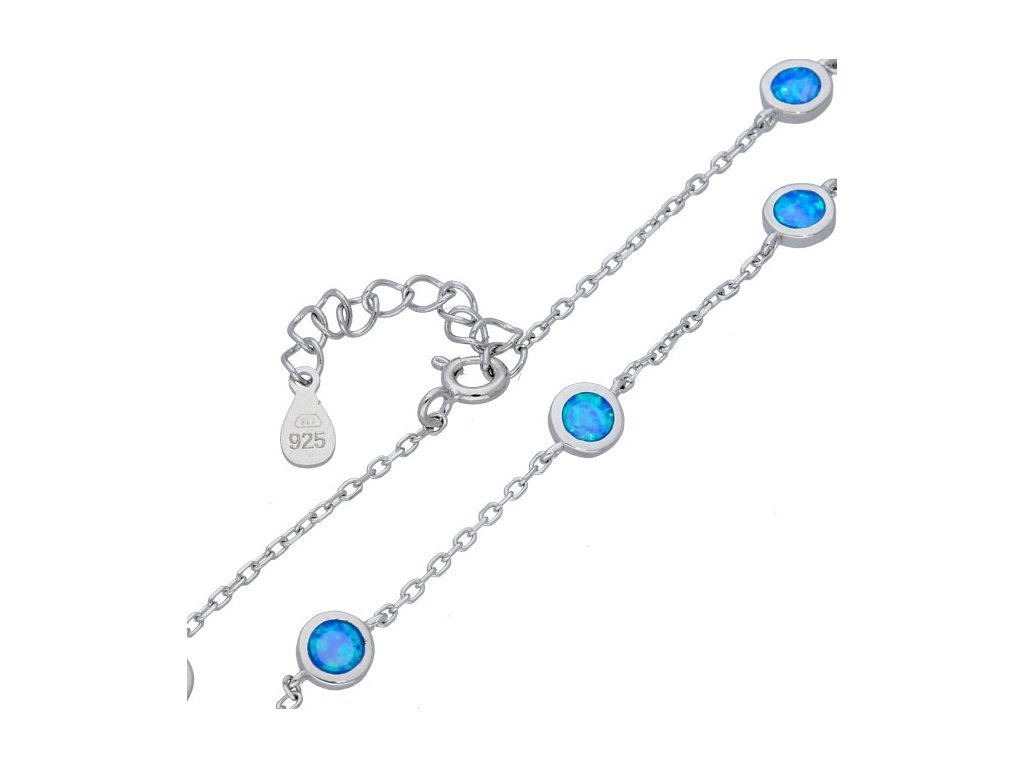 Řetízkový stříbrný náramek s modrým opálem