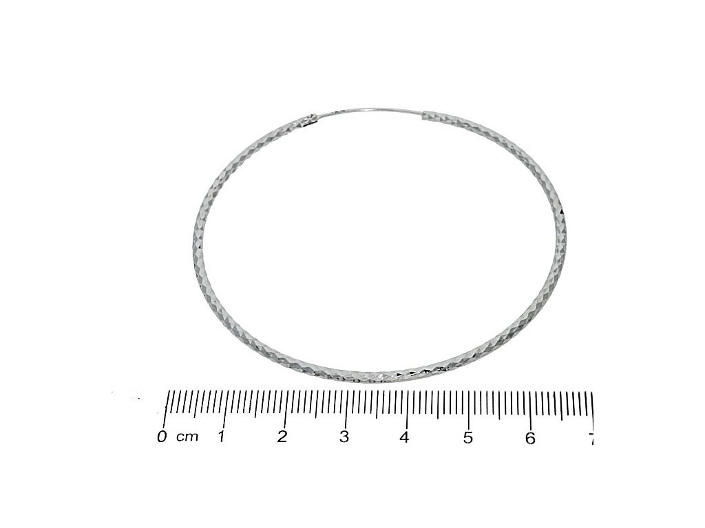 Náušnice jsou vyrobeny ze stříbra o ryzosti 925/1000. Stříbrné náušnice v lesklém provedení jsou ve tvaru vybrušovaného kruhu. Průměr náušnic je 65 mm a jejich šířka činí 2 mm. Stříbrné náušnice kruhy jsou povrchově upraveny rhodiem a jsou skvělým doplňkem na společenské události, ale i na každodenní nošení.