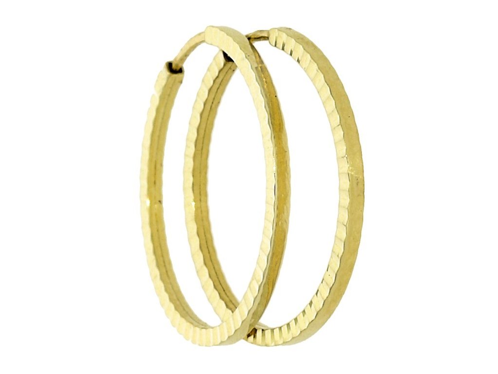 Klasické zlaté náušnice kruhy s broušeným povrchem jsou šperkem, který nikdy nevyjde z módy. Vyrobené z kvalitního žlutého zlata zaujmou jemnou strukturou, která krásně odráží světlo a dodává šperku živý třpyt. Díky svému lehkému designu se pohodlně nosí po celý den a hodí se jak k elegantnímu, tak i k volnočasovému stylu. Skvělá volba pro ženy, které preferují decentní, přesto výrazné doplňky.