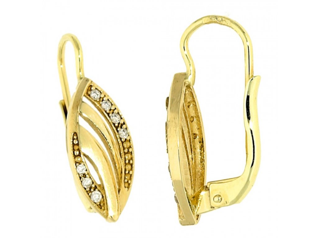 Jemné náušnice ze žlutého zlata s jemně prořezávaným vzorem a třpytivými zirkony dodají každému outfitu nádech sofistikovanosti. Precizně zpracované detaily a lesklý povrch zajišťují nadčasový vzhled. Náušnice jsou díky pohodlnému patentovému zapínání vhodné i pro celodenní nošení. Skvělá volba pro ženy, které mají rády decentní, ale efektní šperky.