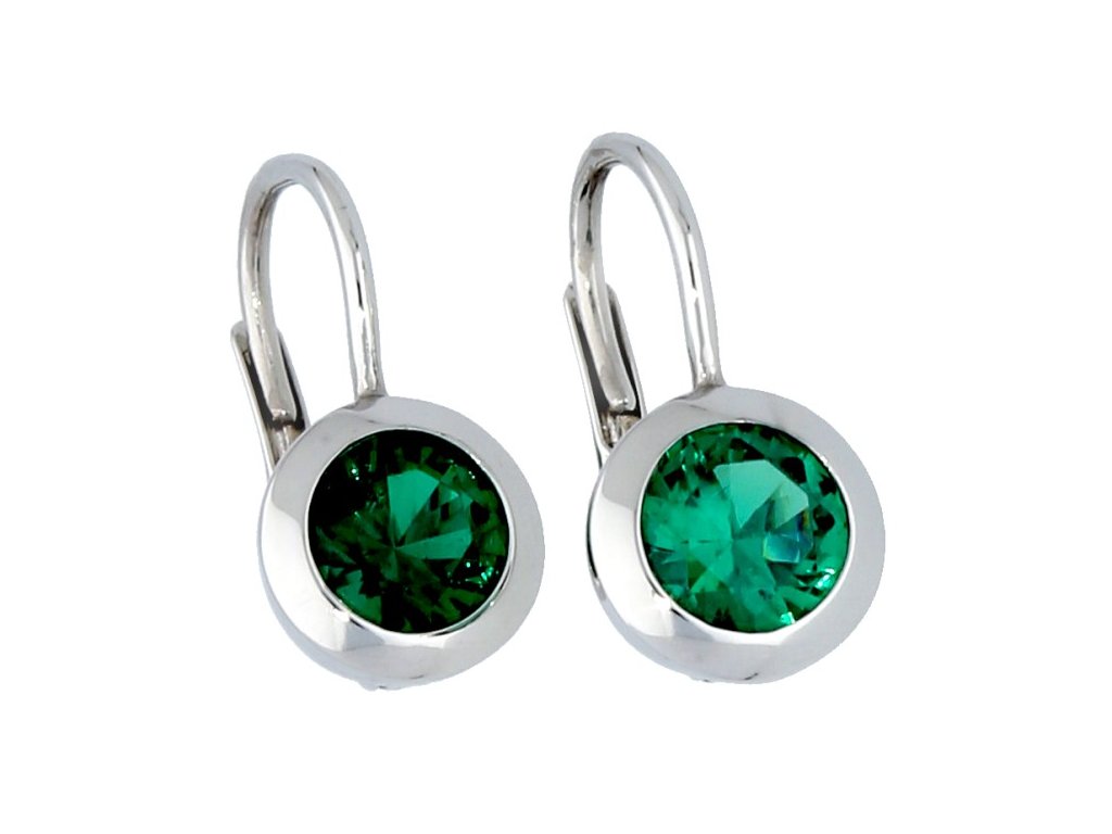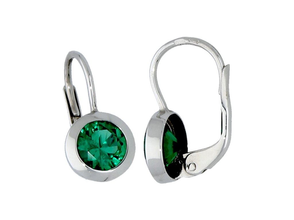 Náušnice bílé zlato kulatý smaragd