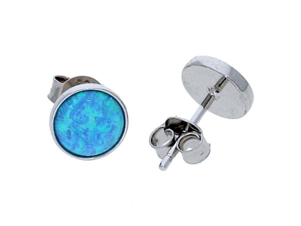 Stříbrné kulaté náušnice modrý opál