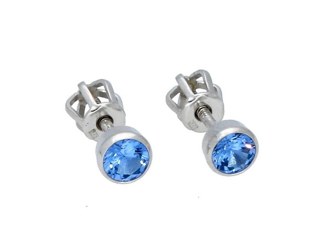 Stříbrné náušnice pecky akvamarín 4mm