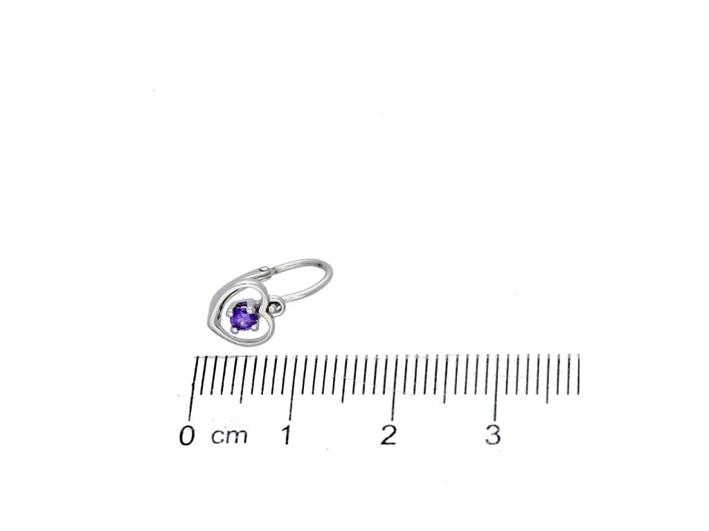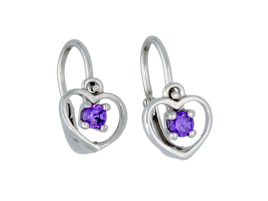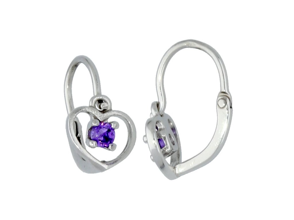 Stříbrné náušnice pro miminka fialové srdce