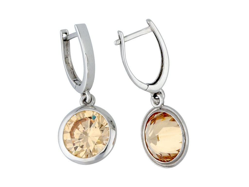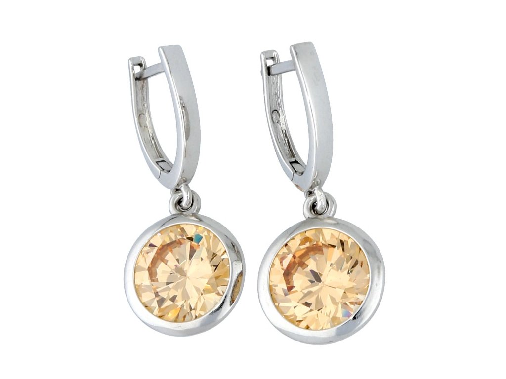 Stříbrné náušnice zirkon barvy champagne