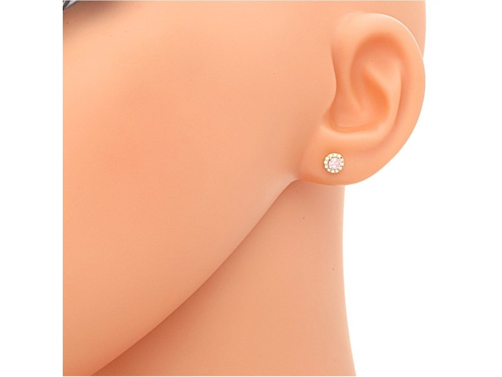 Zlaté náušnice pecky růžový zirkon