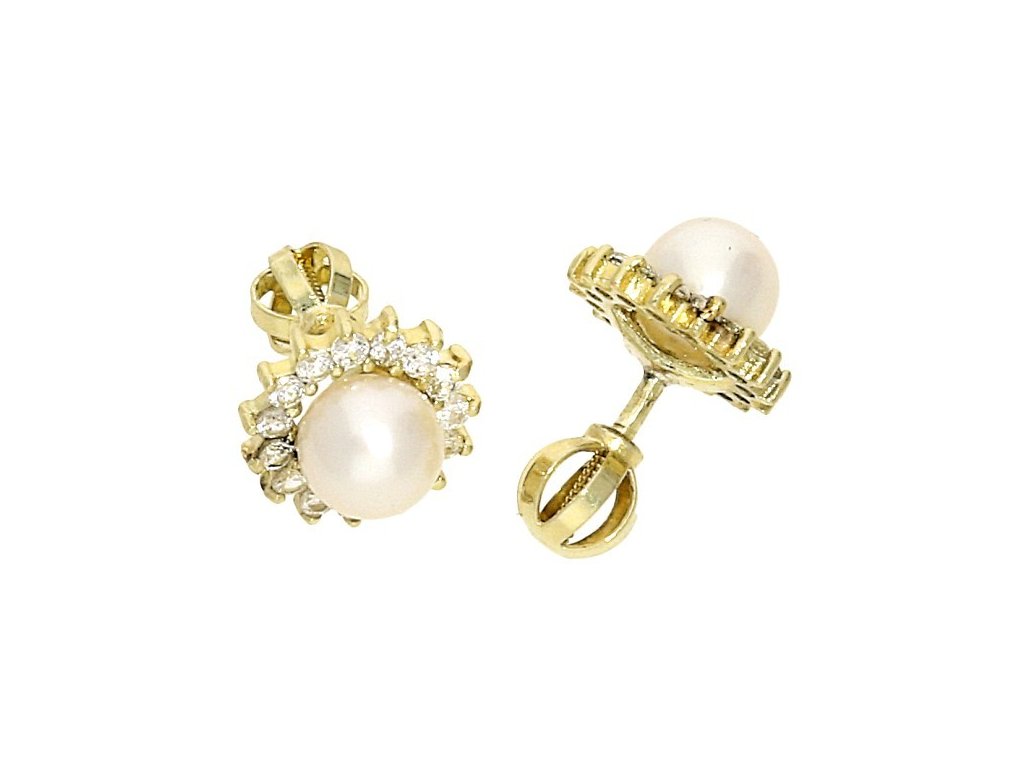 Tyto náušnice jsou vyrobeny ze žlutého zlata ryzosti 14-kt 585/1000. Elegantní zlaté náušnice pecky zdobí kultivovaná přírodní bílá perla a bílé jemné zirkony. Průměr perly je cca 5,80 mm a průměr celé zlaté náušnice je 10 mm. Perlové náušnice jsou opatřeny bezpečným šroubkovým uzávěrem. Nadčasový zlatý perový šperk vhodný pro spoustu příležitostí.