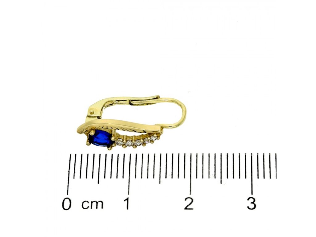 Zlaté náušnice jsou vyrobeny ze žlutého zlata o ryzosti 14 karátů (585/1000). Jsou osazeny oválným synt. safírem v tmavě modré barvě, doplněný řadou jemných bílých zirkonů. Náušnice jsou opatřeny klasickým dámským uzávěrem. Celková velikost této zlaté náušnice je 18x5 mm. Jsou ideální pro každodenní nošení. Doporučujeme.