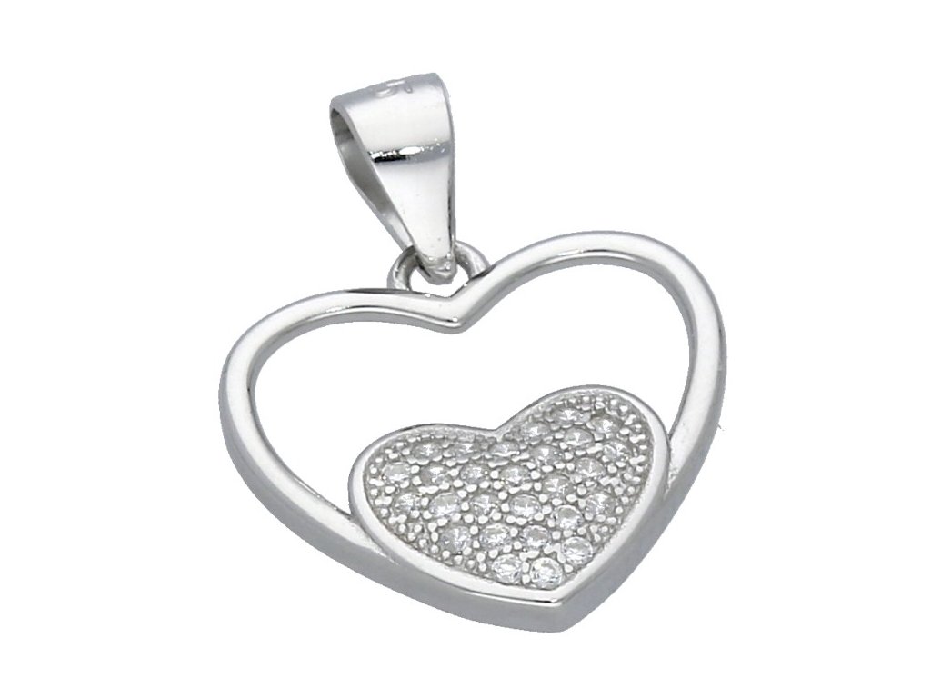 Stříbrný přívěs se zirkony srdíčko