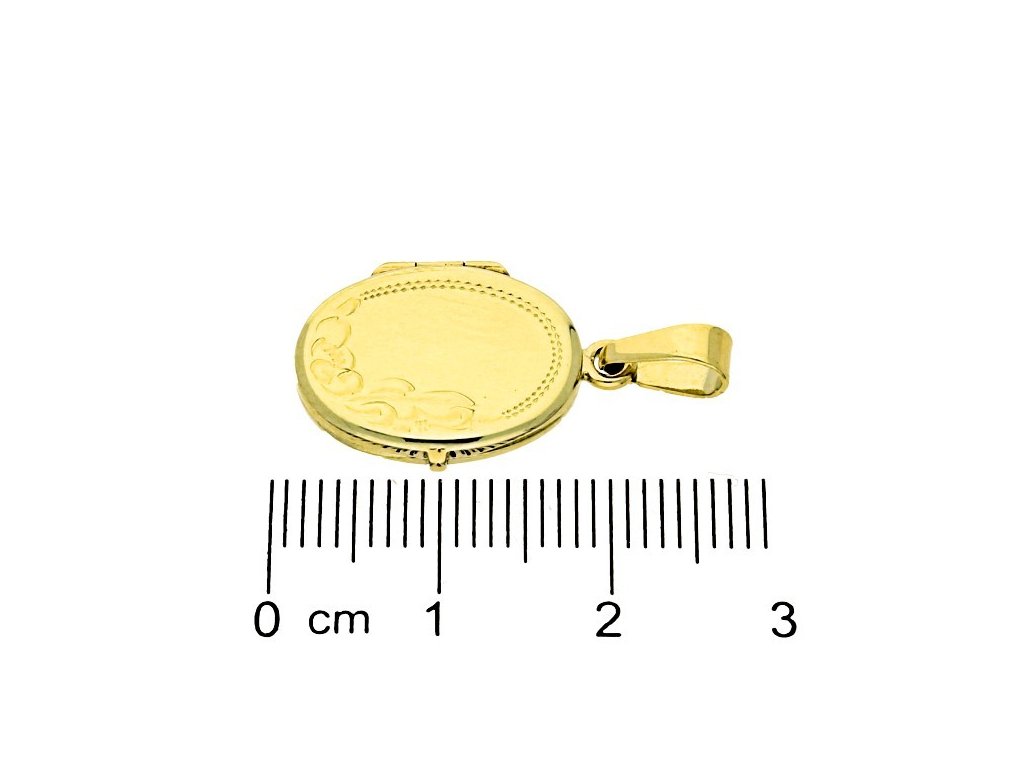 Tento zlatý medailon je zdoben jemnou rytinou a je navržen pro uložení dvou zmenšených fotografií, což z něj činí symbolický a významný šperk. Zlatý přívěsek je vyroben ze žlutého zlata a kombinuje tradiční design s moderním zpracováním. Díky svým rozměrům je vhodný na silnější řetízek.