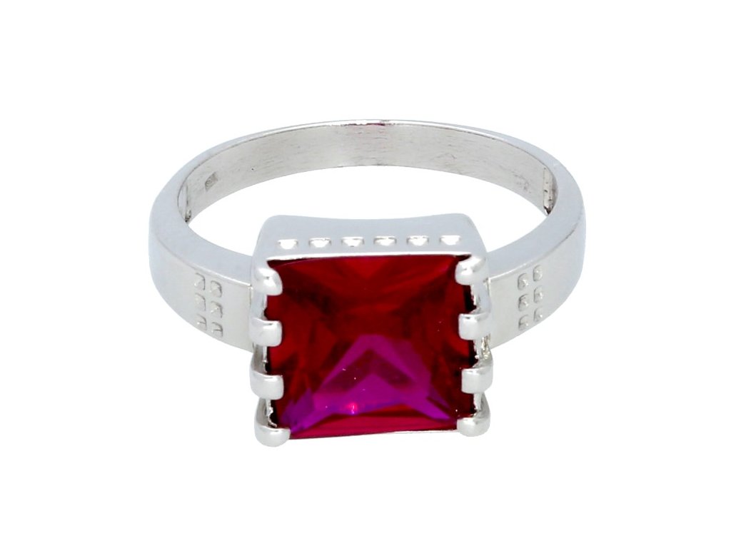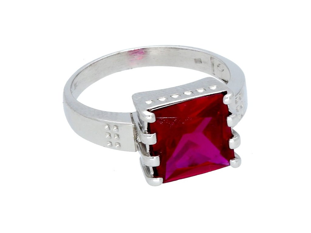 Stříbrný masivní prsten čtvercový rubín