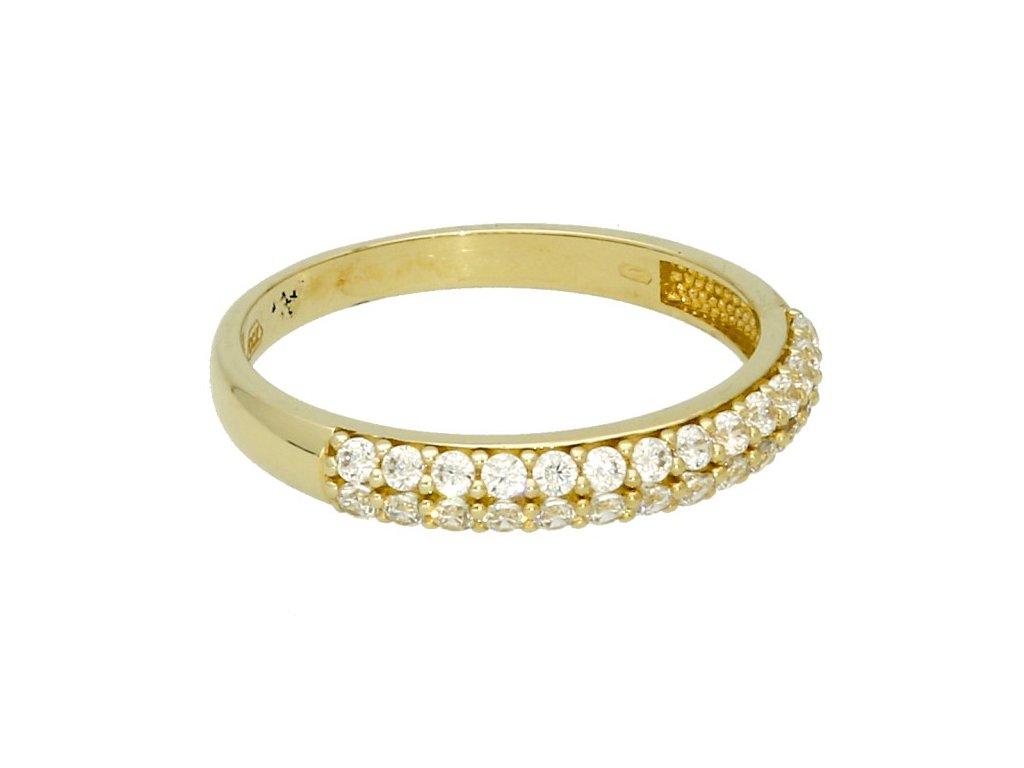Zlatý prsten se zirkony je vyroben ze žlutého zlata a jeho dominantou je souvislá linie třpytivých zirkonů, které jsou precizně vsazeny po celé čelní části prstenu. Díky tomuto osazení působí prsten velmi luxusně a zároveň jemně. Lesklá povrchová úprava zvýrazňuje teplý odstín zlata a umožňuje kamenům maximálně vyniknout při každém pohybu ruky. Elegantně tvarovaná obroučka zajišťuje pohodlné nošení a prsten je vhodný jak jako výrazný samostatný šperk, tak i jako doplněk k dalším zlatým prstenům. Tento model je ideální volbou pro ženy, které hledají nadčasový, výrazně třpytivý a přitom vkusně vyvážený zlatý šperk.