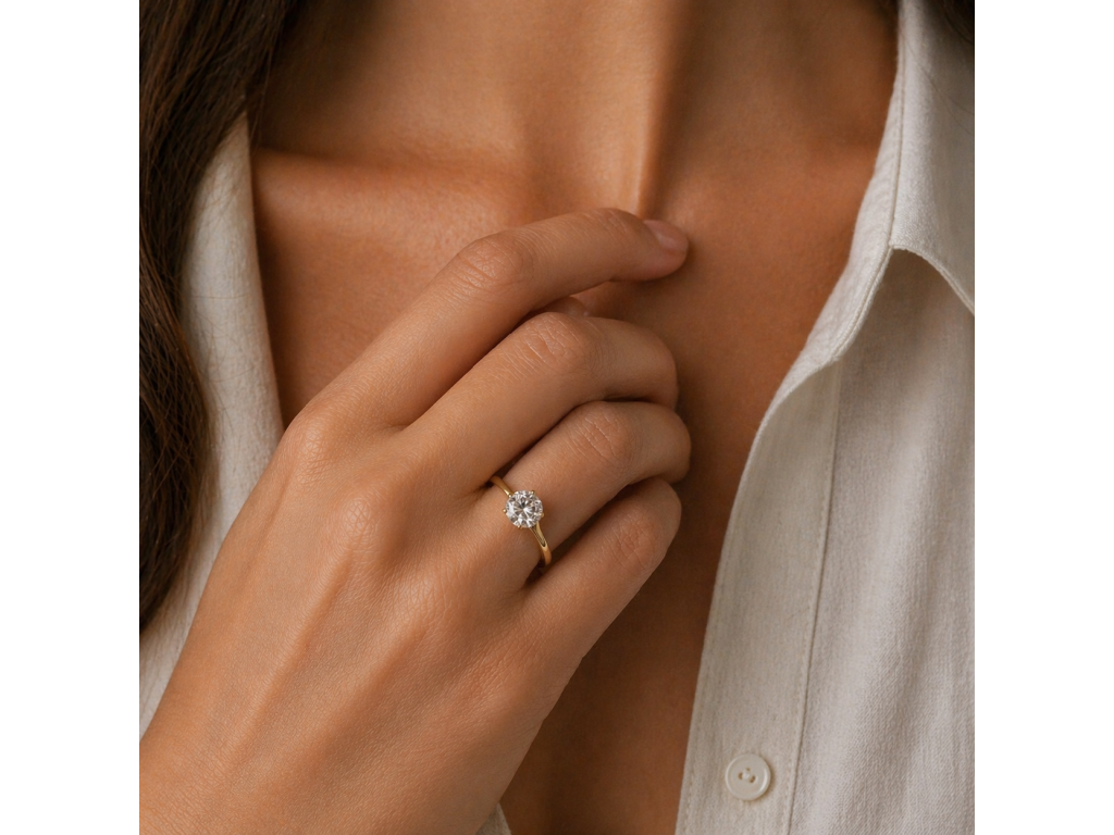 Prsten je vyrobený ze žlutého 14-ti karátového zlata s ryzostí 585/1000. Zásnubní zlatý prsten v hladkém lesklém provedení je osazen bílým synt. zirkonem briliantového brusu, který má průměr 7 mm. Krásný zásnubní prsten je precizně vyroben v naší vlastní zlatnické dílně. Doporučujeme.